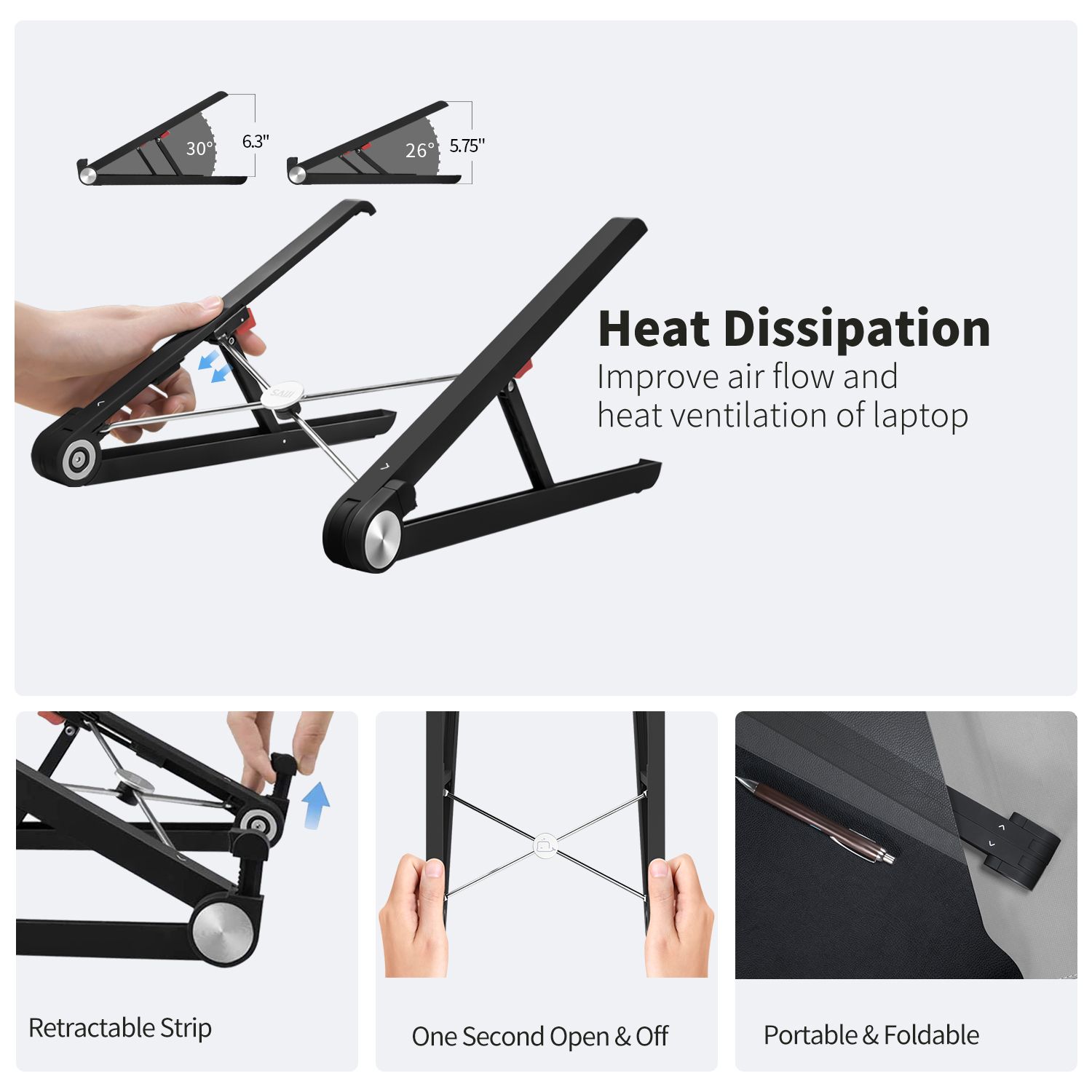 - 4 anti-slip silicone pads protect your laptop from scratching and sliding down.